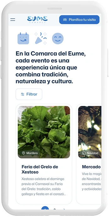 EumeVivo es la web oficial de la Comarca del Eume, pensada para promover el turismo, la cultura y la naturaleza de la zona, con información práctica y experiencias auténticas.